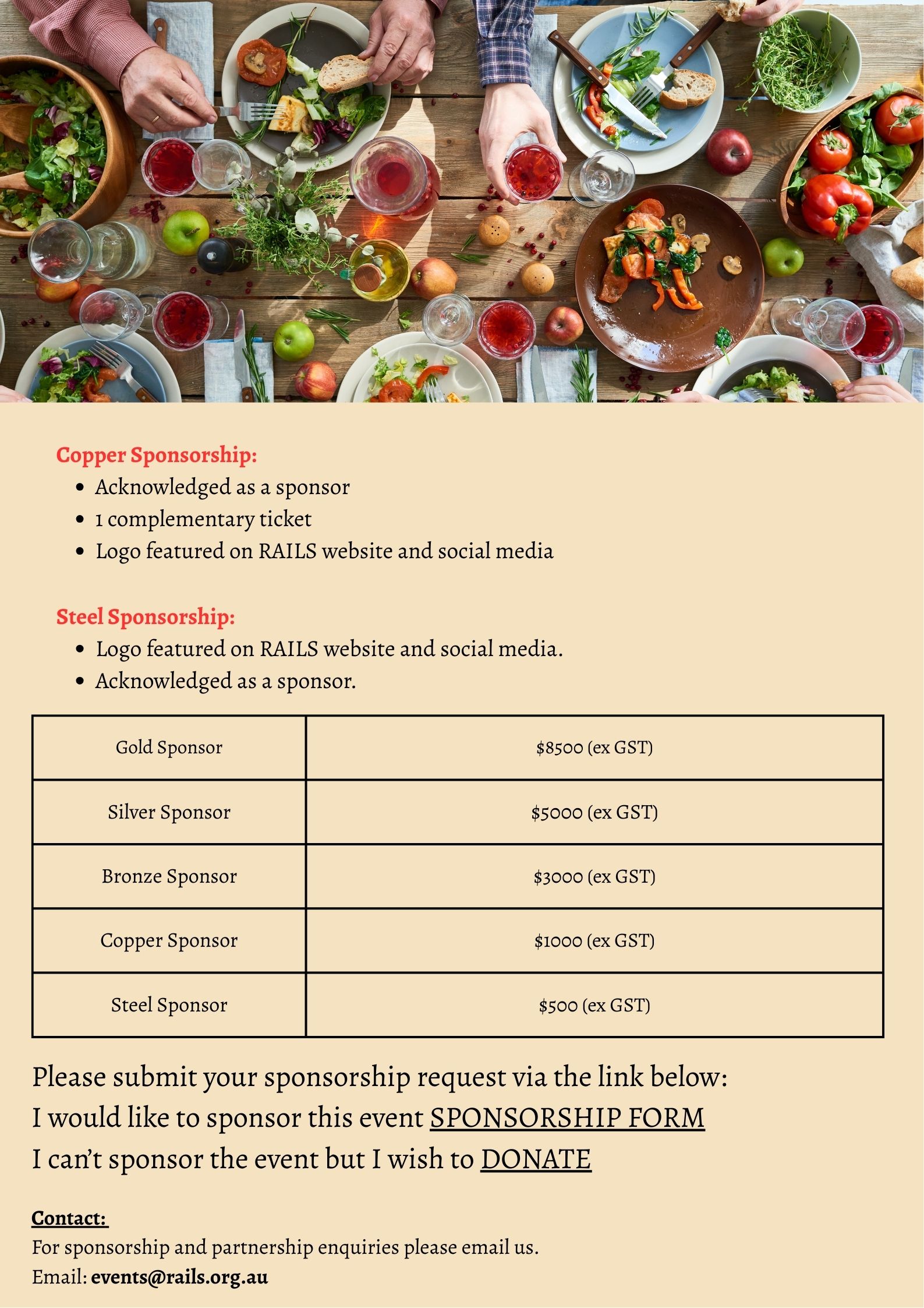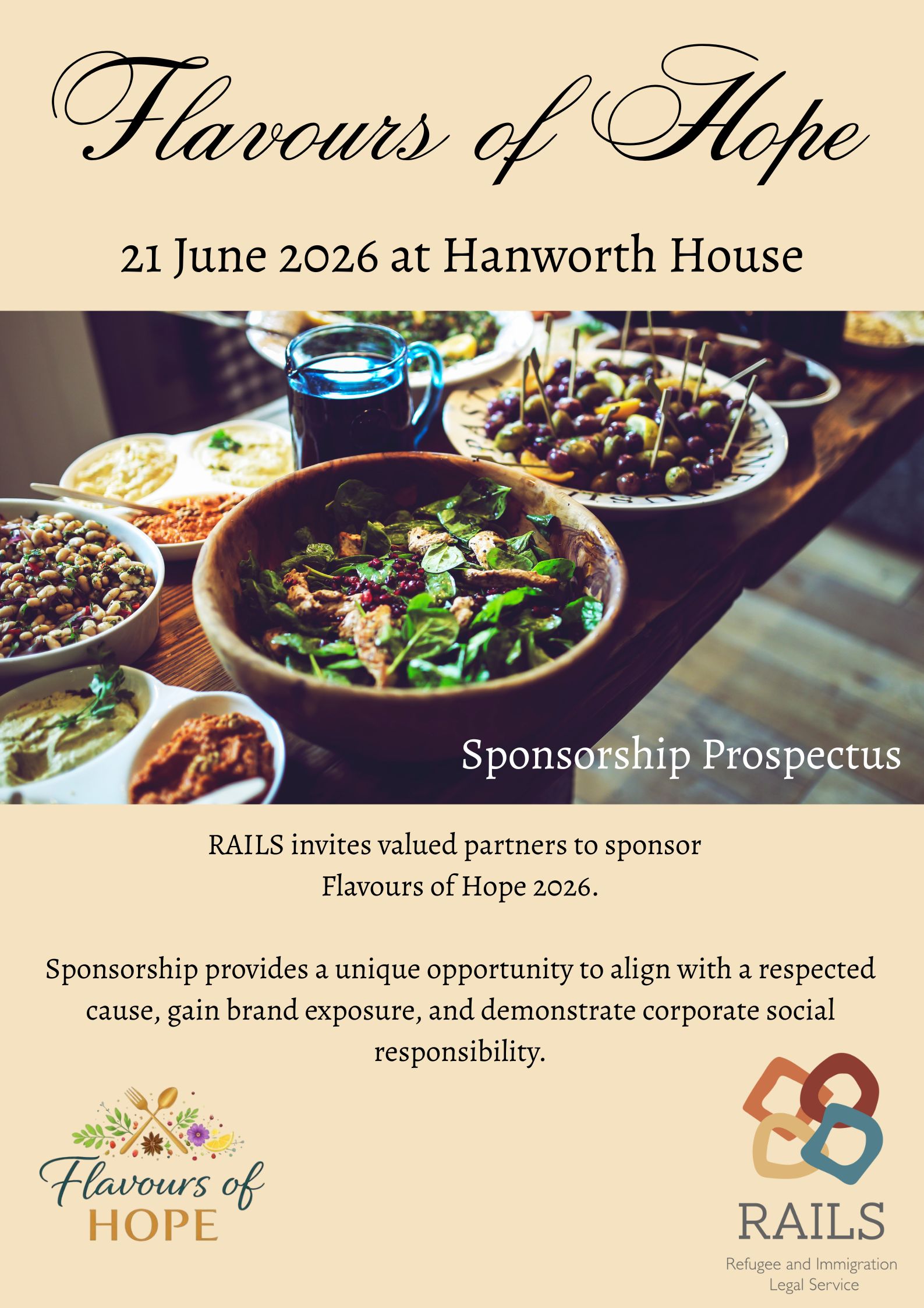 Seating is limited to 100 guests, click here to purchase your tickets: https://rails.supporterhub.net.au/events/flavours-of-hope