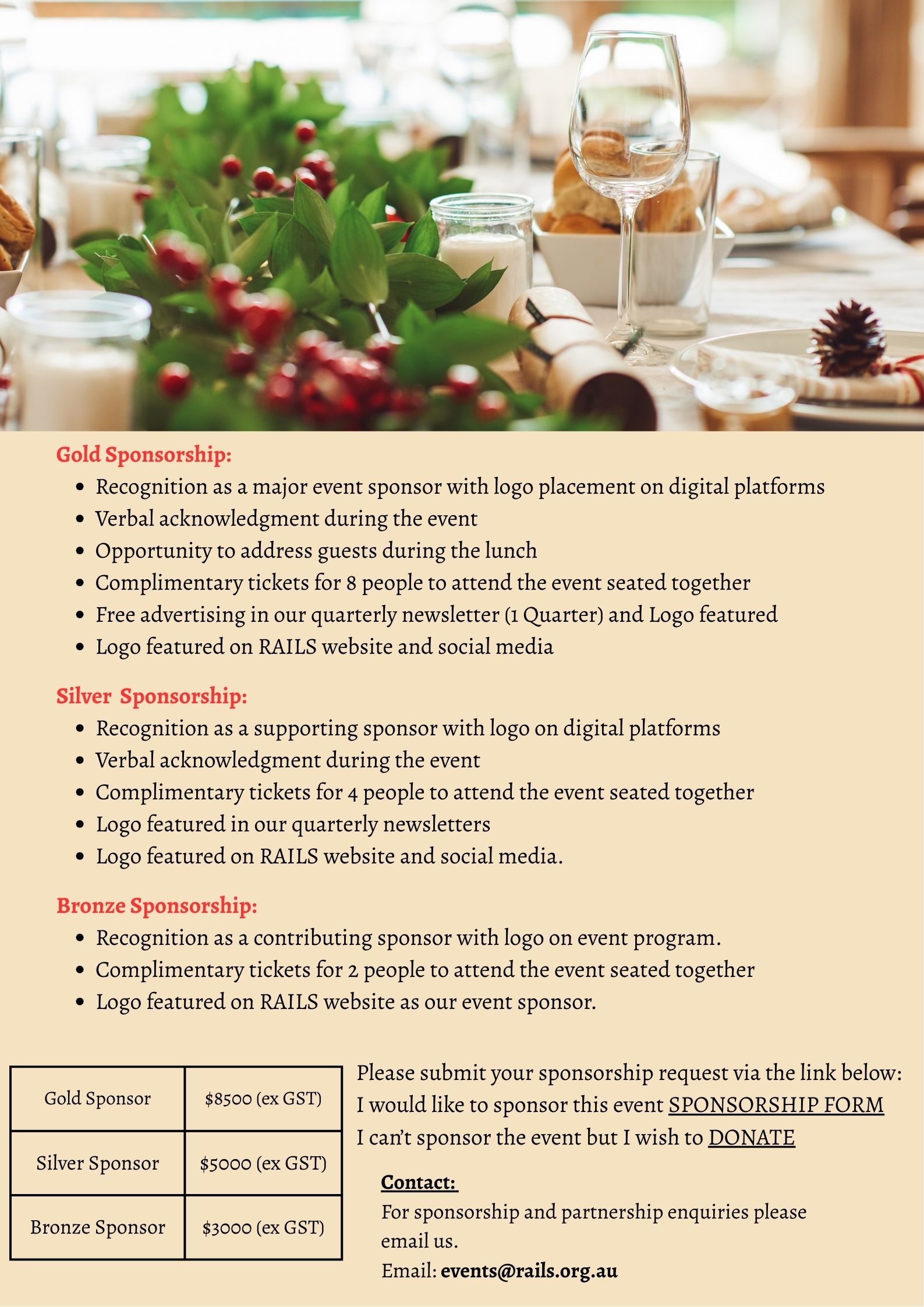 If you would like to sponsor this event, please reach out to events@rails.org.au for the sponsorship prospectus.